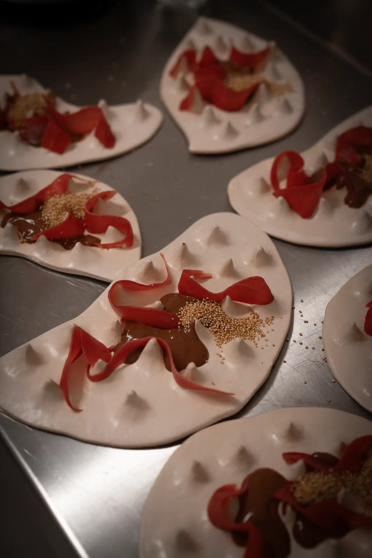 Dieses exklusive Set enthält drei handgefertigte Keramikteller mit floralen Motiven. Jedes Stück wurde im NAZ Atelier individuell gestaltet und glasiert.